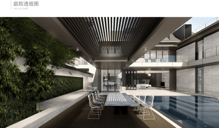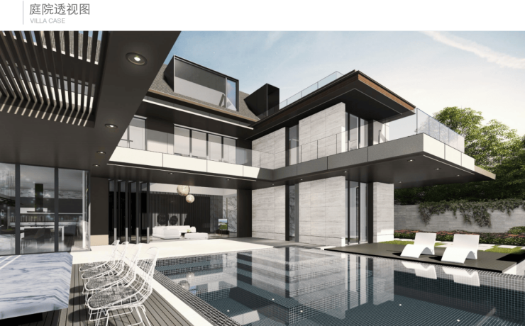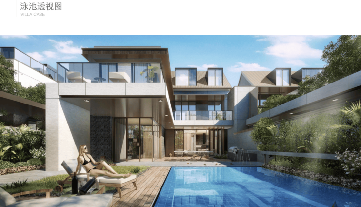 泳池里两旁的庭院,可以与亲朋好友相聚。