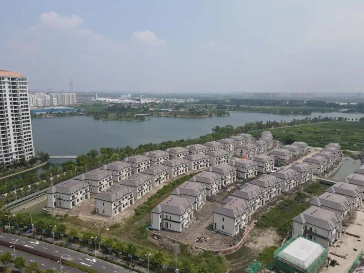从上面的项目实景图可以看出,每一排别墅前都有一条渠道,规划引入水系,可以停游艇,虽然目前看上去并不出彩,那是后期工程还没有结束,等配套施设完全到位,必将使人眼前一亮。