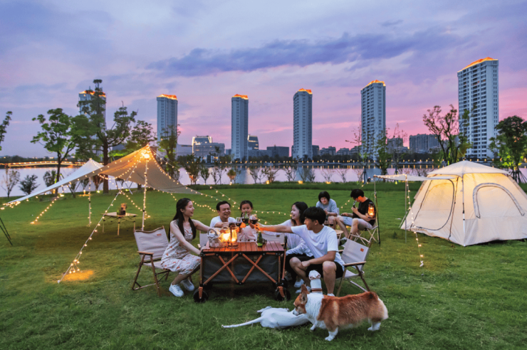 时下流行的露营、野餐也已是兰香湖生态社区的“常规节目”,周末你能看到不少年轻人在此扎帐篷,不止是业主,更多的是游客。