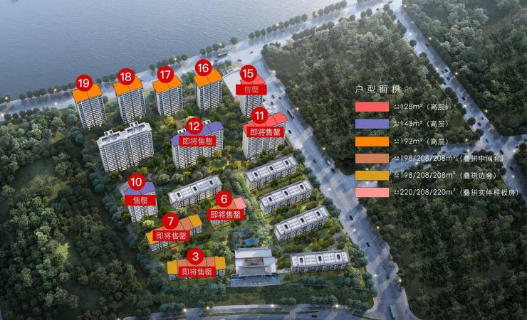 销售信息:建筑面积约128-143㎡云望高层、建筑面积约198-208㎡国风院墅、建筑面积约192㎡湖山云墅