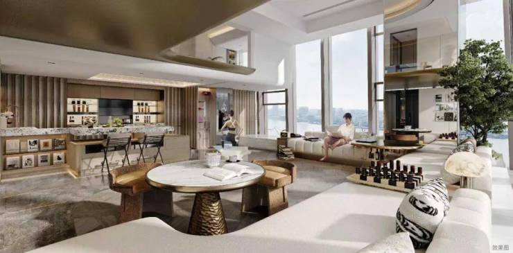 毗邻的W酒店(拟建),让国际化生活融入日常,激发愉悦体验;信步可达的米其林餐厅集群(即将开业),将世界级美味化为舌尖上的情绪流转。步入云端会所,静谧中自有思想碰撞的火花;夜幕低垂时,天际酒廊将城市浪漫尽数收纳。这里的生活是仰望星空的诗篇,也是润物无声的温度。
