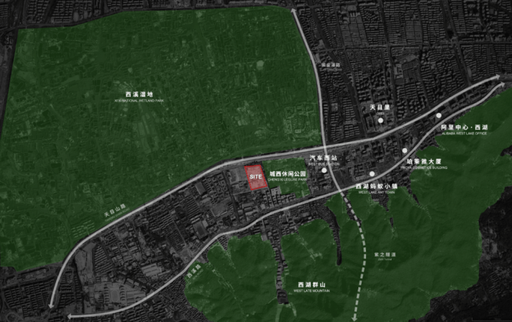 北及西溪湿地,南望西湖群山,且地处互联网金融核心区与城西科创走廊“龙头”位置,生态区位与城市能级使其具备了天然的吸引力和区域标识,也对其空间品质提出了更高期待。