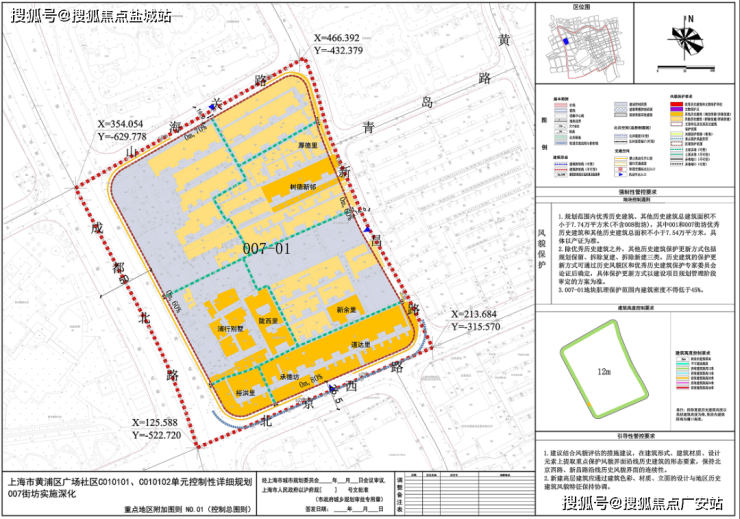 1号地块规划3栋超高层和1栋高层,最高达约165米。具体位置是西至成都北路、东至新昌路、南至新闸路、北至南苏州河路;7号地块规划为风貌别墅。