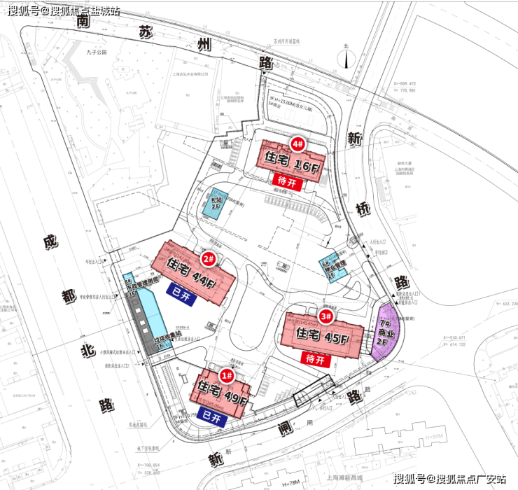 1#地块:分为南北两块:南块,东至新桥路,南至新闸路,西至成都北路,北至成都北路1012弄;北块,东至新桥路,南至新桥路51弄,西至九子公园,北至南苏州路。未来主力产品为超高层住宅。