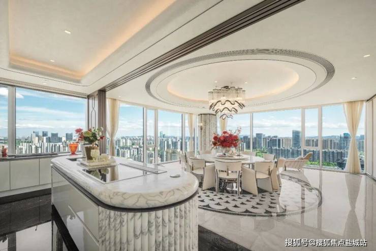 3梯1户,双开装甲门进来,是约25.8m长的餐客厅,停得下约5辆劳斯莱斯,每天都能走约2万步。(建面约)204㎡的巨幕尺度,相当于一个网球场的面积,建筑层高约4m,请费德勒来打网球也不是不可以。