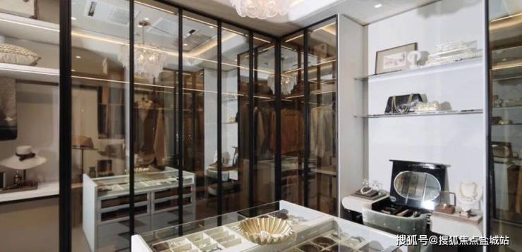 巨大的衣帽间是女孩子的狂欢,中岛的珠宝首饰是最终的梦想,意大利LEMA是精致的优雅。整个主卧形成了洄游动线,竟然有约96㎡,那些宫殿也不过如此。