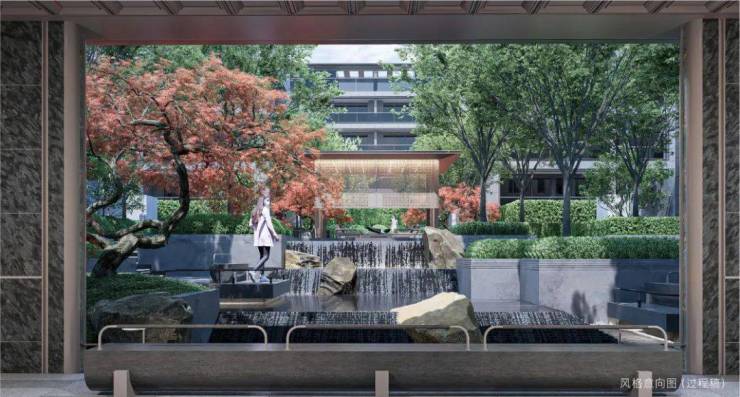 园林以“西湖风景”为蓝本,打造“观水迎宾、山水雅庭、清音叠瀑、寻溪山径、庭院深深”五重归家礼序,和鸣自然山水间,创造隐奢贵雅的生活方式。