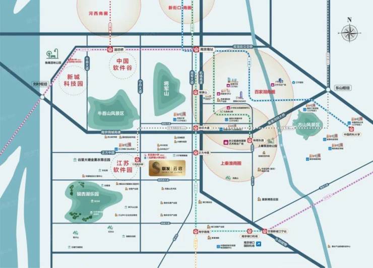 商业配套:联发云启坐拥江宁片区醇熟商业资源,约150米“双子楼”商业综合体(规划)、百家湖、九龙湖3大商圈环抱。其中“双子楼”将打造集商业购物、商务办公、五星级酒店为一体的商业综合体。