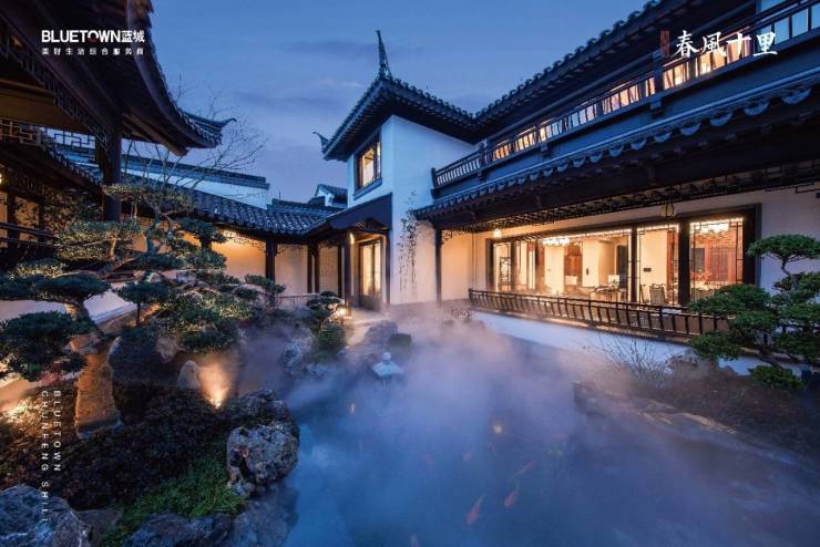作为“美好生活综合服务商”的蓝城集团,择址安吉县城西南生态谧境,匠心打造健康生活小镇——蓝城·春风十里,地块容积率仅0.44,绿地率37.2%,营造总建筑面积约13万方山水低密住区,规划江南中式合院。