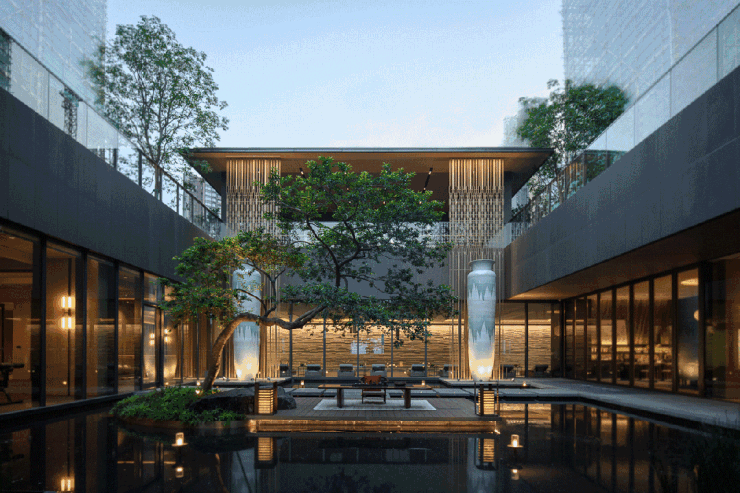 项目以宋式东方美学为基底,打造北滘罕见的约2000㎡的下沉式高端人文会所。