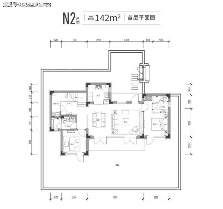 142㎡户型为例,面宽约15.2米,标准4房4卫。一楼是约7.2米长的双面采光大横厅,除了老人套房,还有个向院子伸出的“X空间”。它既能用作茶室、棋牌房,也能成为私密的客卧。拥有两个套房,主卧还是带南向独立衣帽间+带浴缸卫生间+露台“满配套房”!无论采光还是实用性,都碾压普通合院。