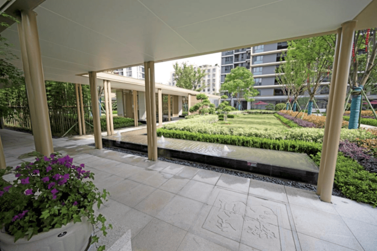 主题景观区重视景观的休闲性,大尺度多层次化的处理和小尺度扩大化原则,充分满足不同人群的需要。开放与半开放空间相互融合,形成和谐的邻里交往关系。本项目通过传统庭院空间与现代邻里思想的关联,将庭院要素引入邻里空间,从文化、空间、意境三个方面探寻现代住区院落空间的营造方法,为居民提供分享、互助、交流的共享空间。