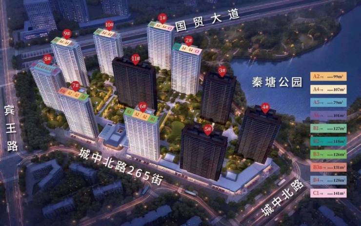 交通:城市中轴国贸大道与宾王路交汇处,直距约800米近揽轻轨枢纽秦塘站