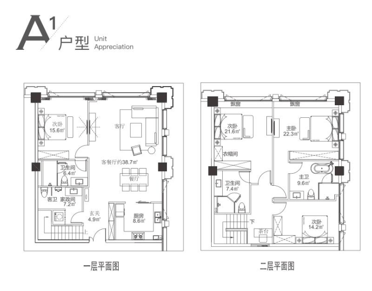F1户型:建面约160-180m²(套内面积210-240m²)