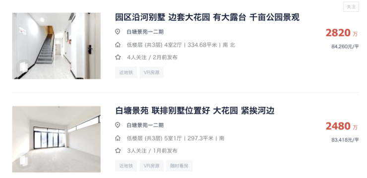 1、白塘壹号二手联排别墅价格:8.3万/平;