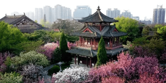 东南形胜,乐游登高。长安城东南乐游原,海拔467米,为长安城至高点。因其暗合易经“六爻”理论中的“九五”之位,又被尊称为九五国脉。乐游原自古以来是皇家游览胜地,在唐时更是高光瞩目,皇室贵胄,诗人名士置宅于此,如太平公主、白居易、柳公权、贺知章等。