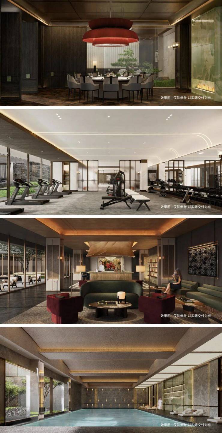 社区内规划有超1700㎡的超配会所,涵盖谧境泳池、健身中心、瑜伽室、私宴厅、下沉庭院、茶享书阁、棋牌室七大高定主题空间。