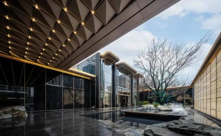 【下沉庭院】踏入社区的那一刻,眼前便会展现一座约1000平方米的精致下沉式庭院,设计师巧妙融合了中华民族对松树高洁品质的崇敬,从文徵明的《听泉图》中汲取艺术灵感,深入大兴安岭之心,精选了十株形态各异的松树。一切努力,旨在完美呈现“松涛轻拂耳畔,清泉潺潺石上”的宁静与和谐之美。漫步其中,您将率先领略未来生活的惬意画卷。