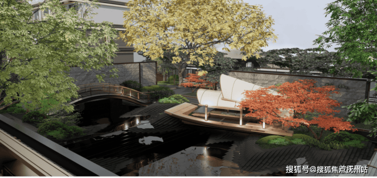 除了 “风雅三进”的归家礼序外,整个社区内还有 “行舟六幕“的景观营造,取天时、地利、人和的寓意,匠筑青浦独有的东方墅境生活。