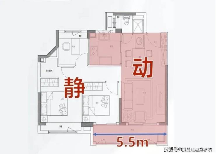 不仅动线更加合理,动静互不干扰,保证使用者的空间体验的舒适性。而且减少了过道带来面积浪费,给住户带来了更强的空间体验感。
