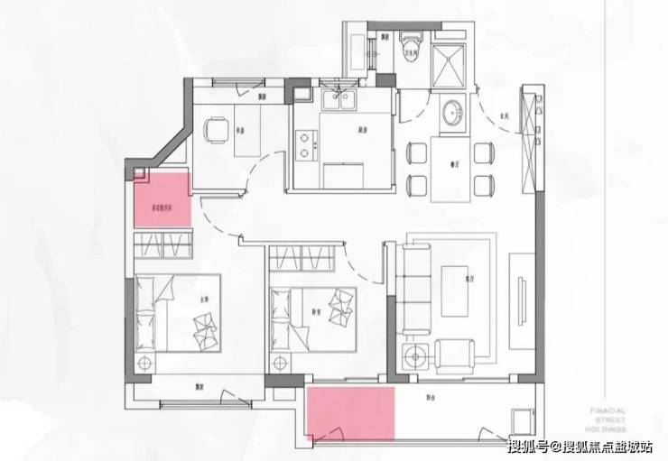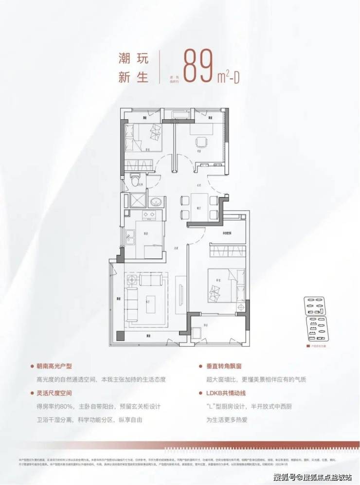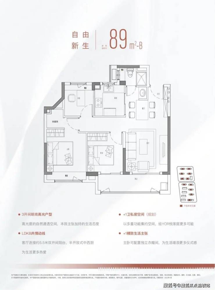 「金融街美兰金悦府」售楼处热线:400-000-0460转6666【预约☎】金融街美兰金悦府的89㎡B户型3房双开间阳台的 面宽达到了5.5米,三开间朝南,格局方正,干湿分离,非常适合自住