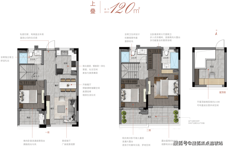 中叠入户电梯直达车库,超大露台入户。户外露台可以种植四季花卉,也可以打造成家庭烧烤区,家人朋友在这里聚会闲聊,享受闲暇时刻。;