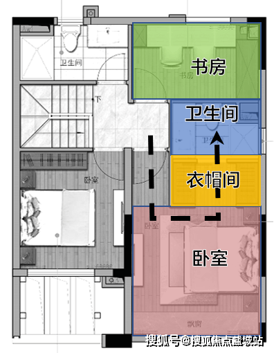 将卧室,衣帽间、独立卫浴和书房一体化配备,作为一个功能齐全的大套房,满足青年人工作、生活、亲子的全方位需求。