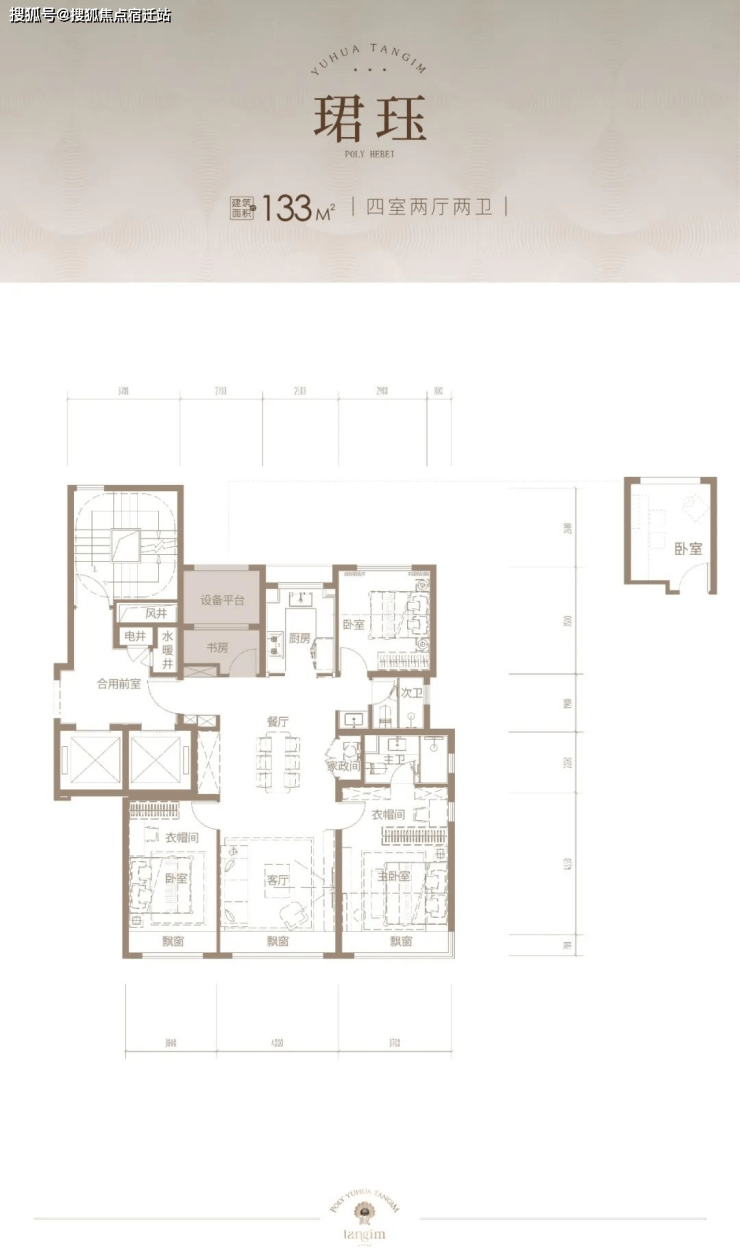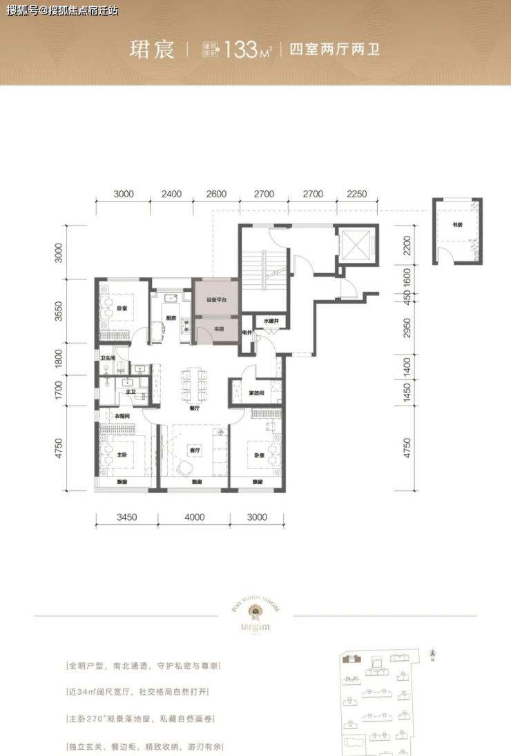 户型空间场景重构:通过结构优化与场景再造,将得房率做到至高92%,超越市场同类产品。建面约133㎡全明四居,打造了经典“四叶草”格局,四个卧室互不干扰;建面约164㎡四面宽四居,让每个空间都成为阳光与风景的“取景框”。