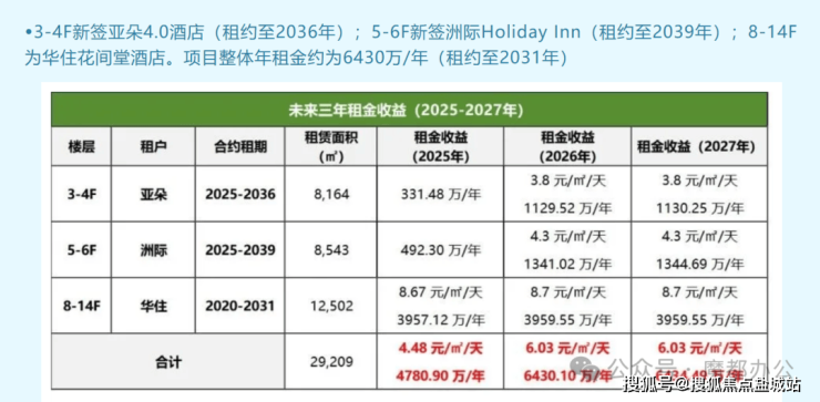 租金回报:6430万/年,每三年递增