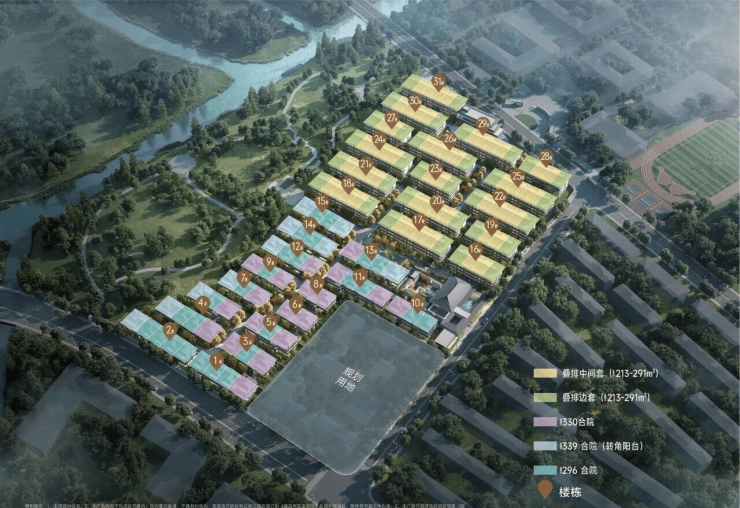 【户型面积】:叠排213-291㎡,合院296-339㎡