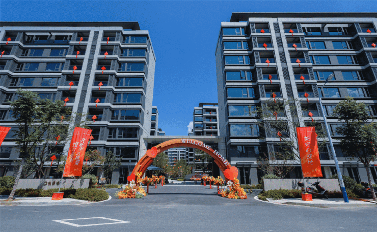 进入小区,“高级灰+大玻面”的建筑外立面,极具标识性。