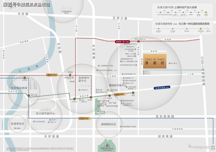 【涌潮府】定址曹路镇核芯单元,紧邻金桥经济技术开发区、张江科创城、外高桥自由贸易试验区,地理优势突出。往北直线距离约9km可达外高桥自贸区,往西直线距离约9km可达金桥开发区,往南直线距离约15km可达张江科创城,直线距离约17km可达陆家嘴。