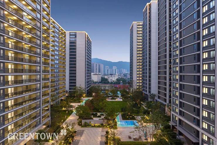 绿城标志性的泳池,同样融山贯水,成为可嬉戏、游赏的日常。