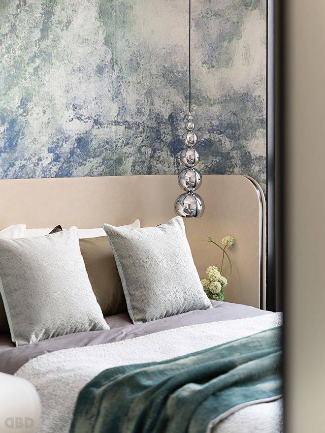 卧室当中并没有过多的装饰品,以精致的背景话画主题。在空间的色彩衬托下,似乎也能够感受到空间当中的舒适度。