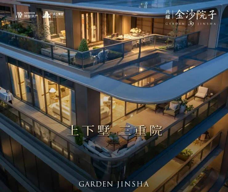 金沙院子,兴耀首个超级院墅,上下双叠。上叠面积255方,下叠约245方,最小花园115方。
