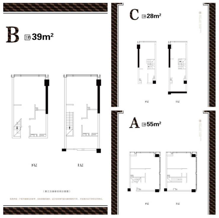 【户型】29-36㎡LOFT,39-45-55㎡双钥匙,主力户型39㎡