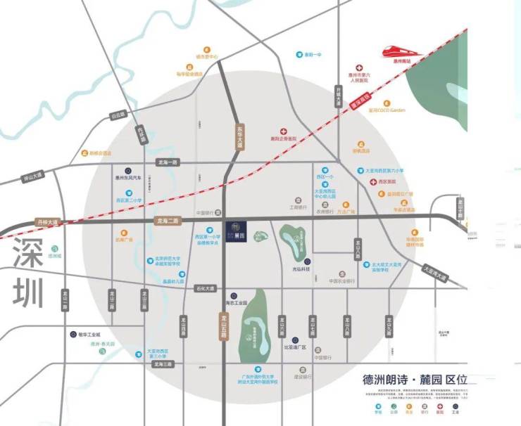 4条高速:项目周边已通车深圳外环高速、惠深沿海高速、惠大高速、沈海高速,距四大高速收费站10分钟以内车程;