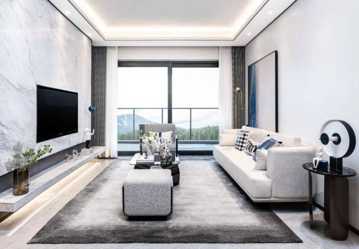 豪宅配置的全景落地窗设计,不仅提供无限量的采光,增加空间亮度,还将居室的可视面达到最大化,凸显出室内的开阔之感。