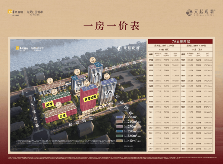 【面积段】高层约225/270㎡;叠墅约260/360/410㎡