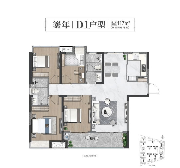 【产品规划】:17幢高层,建筑面积约64-117㎡二到四房