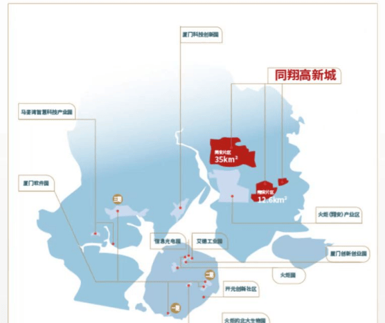 火炬集团开发园区占厦门不到3%的士地面积,实现厦门43%的工业产值,2020年火炬集团又肩负起47.6平方公里同翔高新城开发建设主体。
