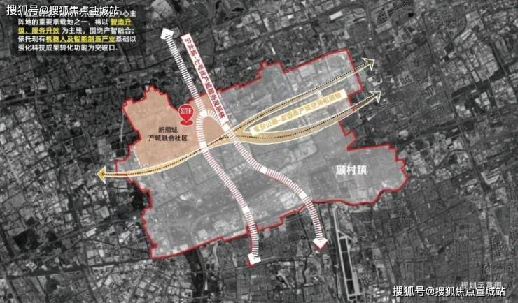新顾城地处北上海产城融合带和TOD发展轴的交汇处,呈现城市副中⼼级的产城发展轴线:向东联动国际邮轮港、国际科创城,向南沿7号线联动丰翔路、南⼤TOD集群和科创中⼼,定位为上海北部产城相融合、配套⾼标准、宜居多元化的⼤型居住社区,稳稳承接宝⼭产业升级转型和创新发展的海量⼈才和居住需求,逐渐发展为北上海的宜居核⼼区。