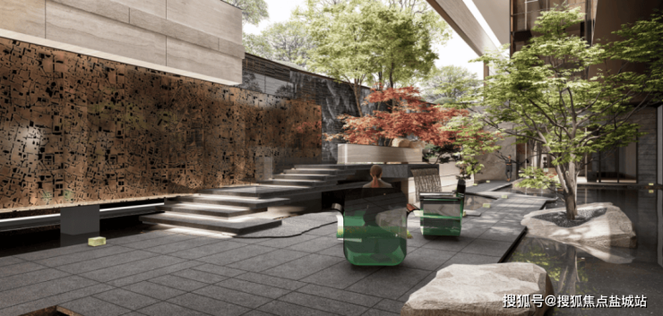 社区景观方面,项目以"富林风华,十景多花园"为核心理念,通过现代设计语言重构《富林十景》的山水意象,将"山、水、茶、酒、舟、市"等江南文化符号有机融入空间序列营造"一步一景,移步异景"的沉浸式归家体验。