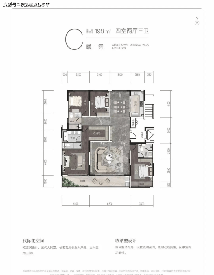 洋 房:198㎡ 4房2厅3卫