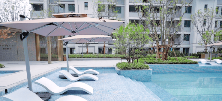 大家都知道泳池是高端住宅社区的标配,云湖万象规划设计了约1000㎡的戏水池,并人性化的设计分成人池和儿童池,适合不同年龄段的人在此休闲娱乐。