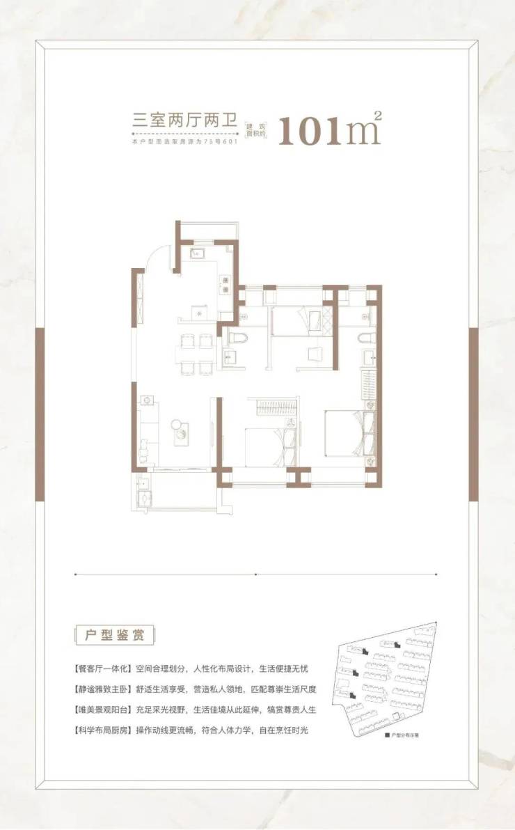 户型解析:三开间朝南+主卧套房设计+动静分离+全卧室带飘窗,采光优秀;厨房预留大尺度冰箱位;双卫设计,没有了“早高峰”的烦恼;主卧套房,尊享私密和奢阔尺度。舒适度和尺度感兼具,非常匹配精英家庭的生活追求!