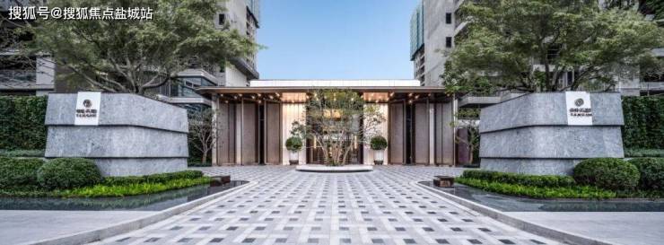 保利投入重金,地面石材通铺,两侧围墙景墙化处理。 选栽3棵20年树龄的小叶榄仁搭配6棵10年树龄的黄花风铃木,形成一段景观大道,使其在城市环境中拥有良好的视觉昭示性以及豪宅必备的私家场域感。