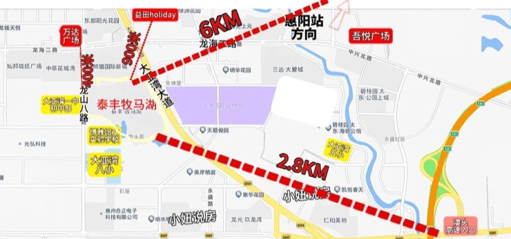 高铁:项目距离惠阳站约6km,25分钟直达深圳北站,最高峰班次达5分钟/班