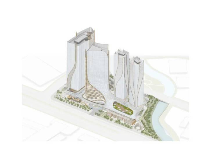 该项目由四座高140米的塔楼组成,综合体的独特张力通过酒店塔楼立面上标志性的巨型玻璃天幕彰显,加强了创造开放姿态的建筑设计理念。