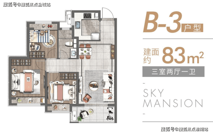 除此之外,项目还有建面约83-89㎡的3房高层户型,设计同样惊艳,并且总价更加友好。